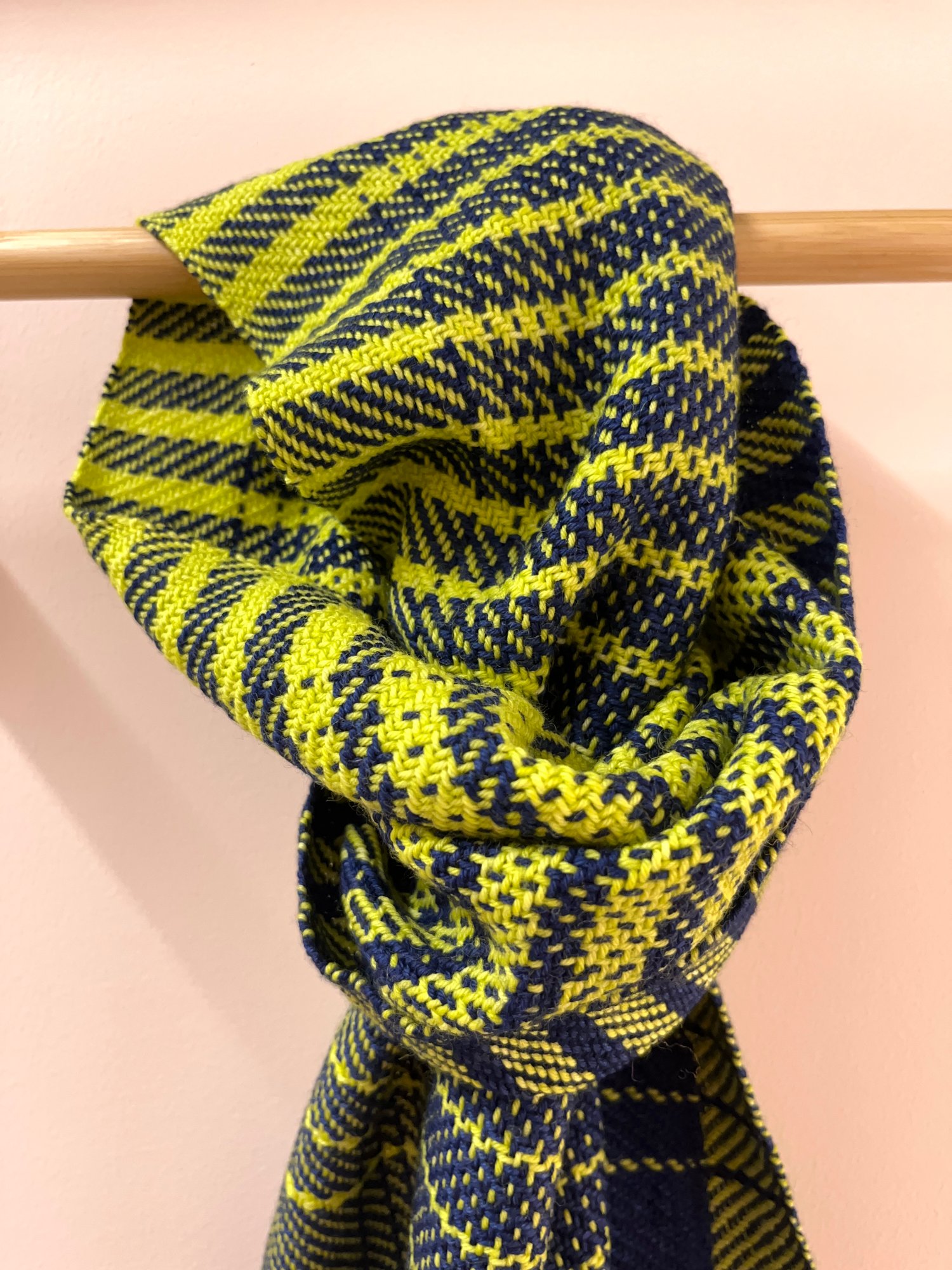 Graduated Scarf in lime and navy blue made with luxurious merino wool.