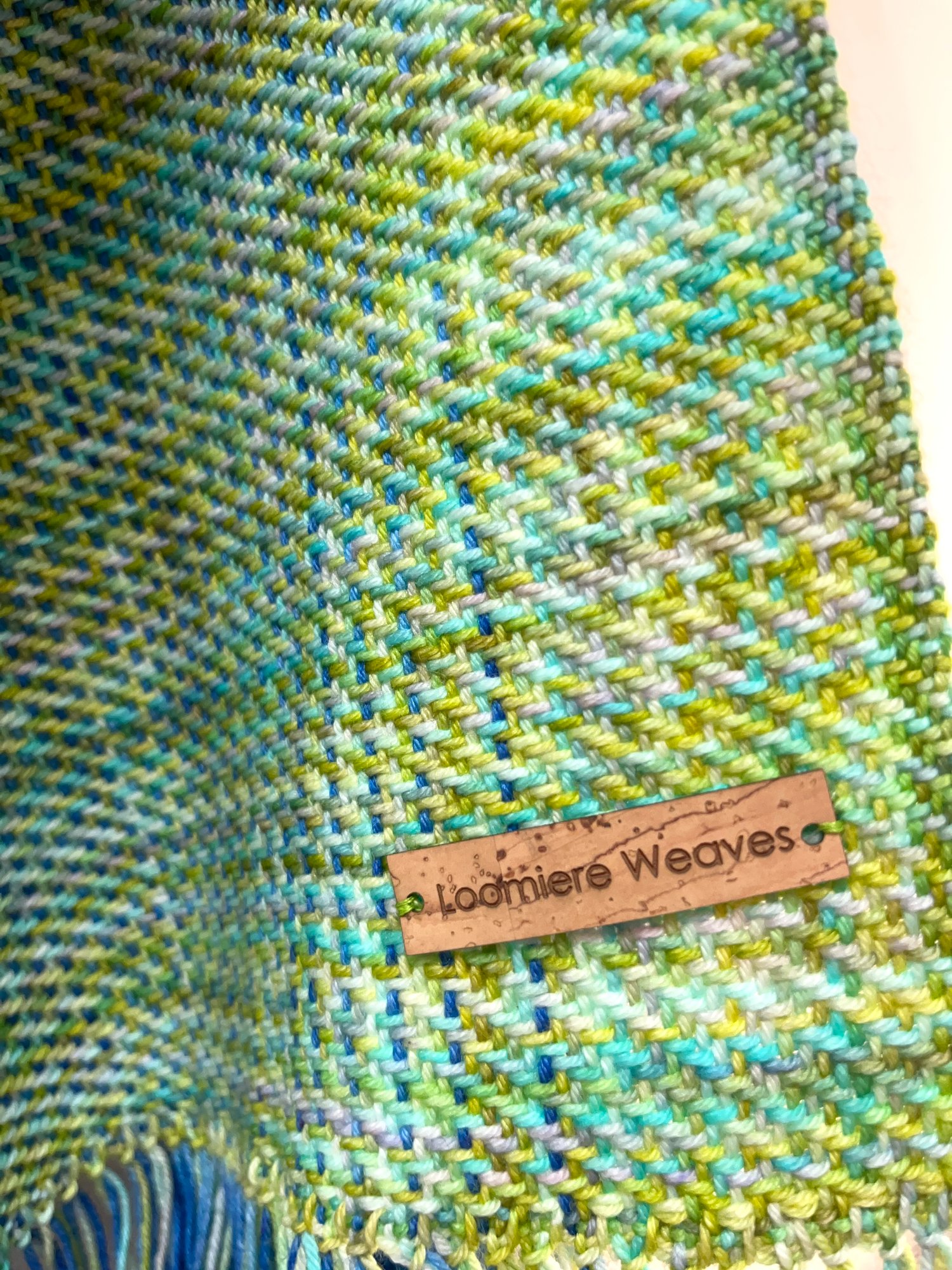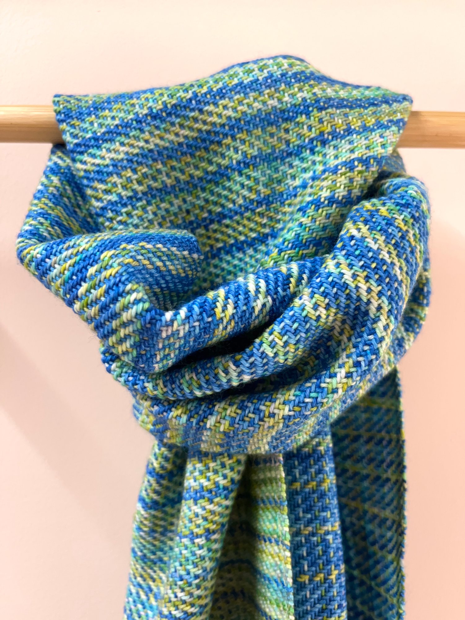 Graduated Scarf in ocean blue & greens made with luxurious merino wool.