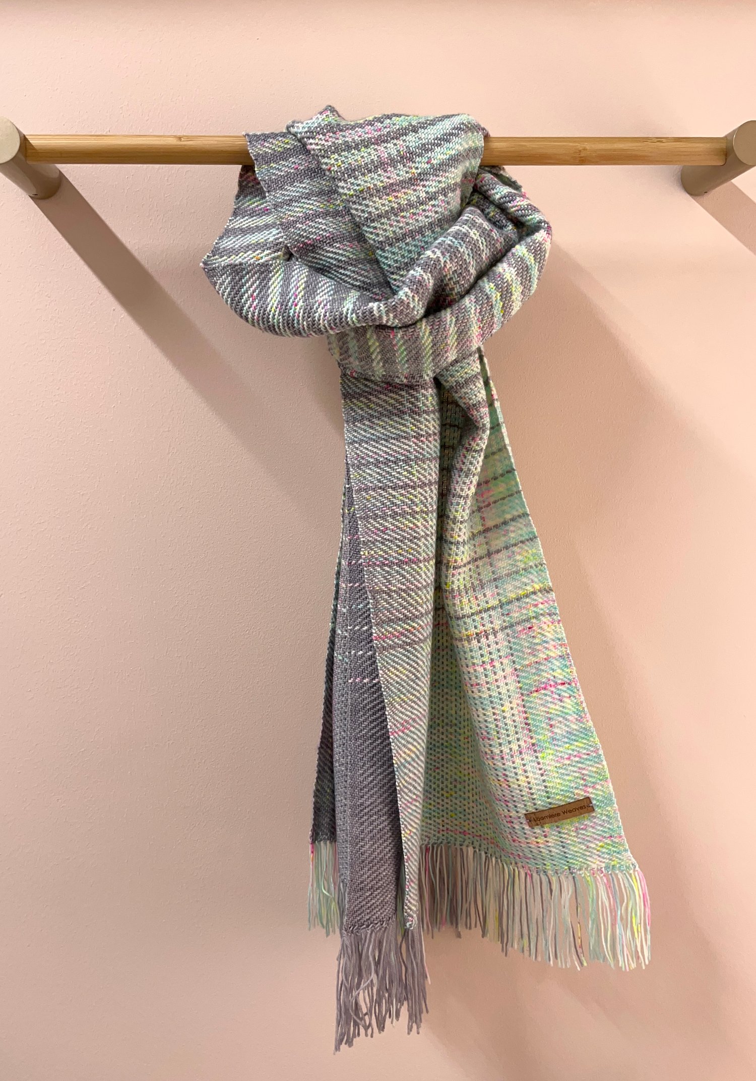Graduated Scarf in pastel fleck & grey made with luxurious merino wool.