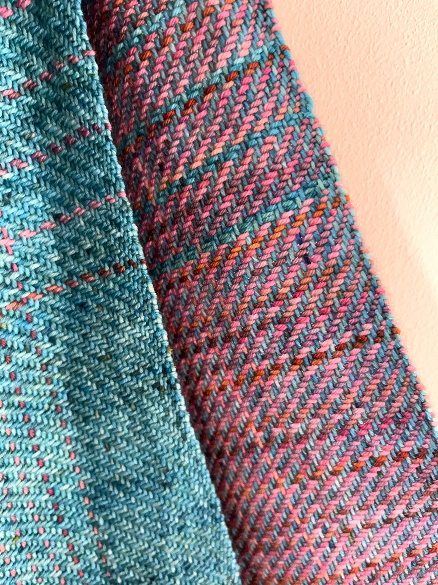 Graduated Scarf in teal & foxglove pink made with luxurious merino wool.